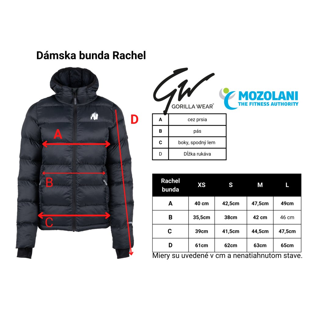 Bunda Rachel je vhodná na nosenie jeseň-jar, ale aj zima. Bunda úzkeho strihu má prepracovaný dizajn. Strečové vnútorné manžety (s otvormi na palce), ktoré zakrývajú zápästia a držia rukávy na mieste. Bunda má predný zips s ochranou brady, aby sa pokožka nedostala medzi zuby zipsu. Sťahovacia šnúrka na leme na vnútornej strane vám umožní prispôsobiť strih v spodnej časti. Vrecká majú zips, takže si svoje veci môžete bezpečne uložiť a nosiť so sebou.
